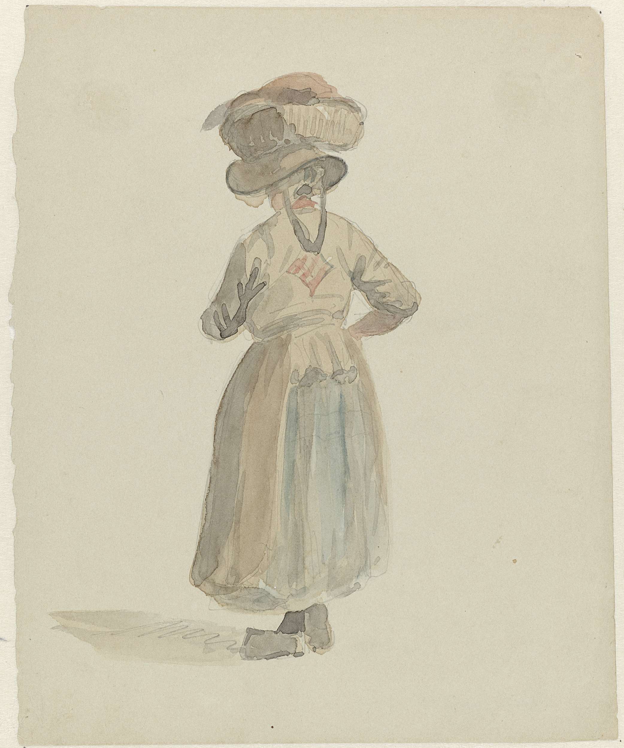 Figuurstudie van een vrouw met een mand op het hoofd...