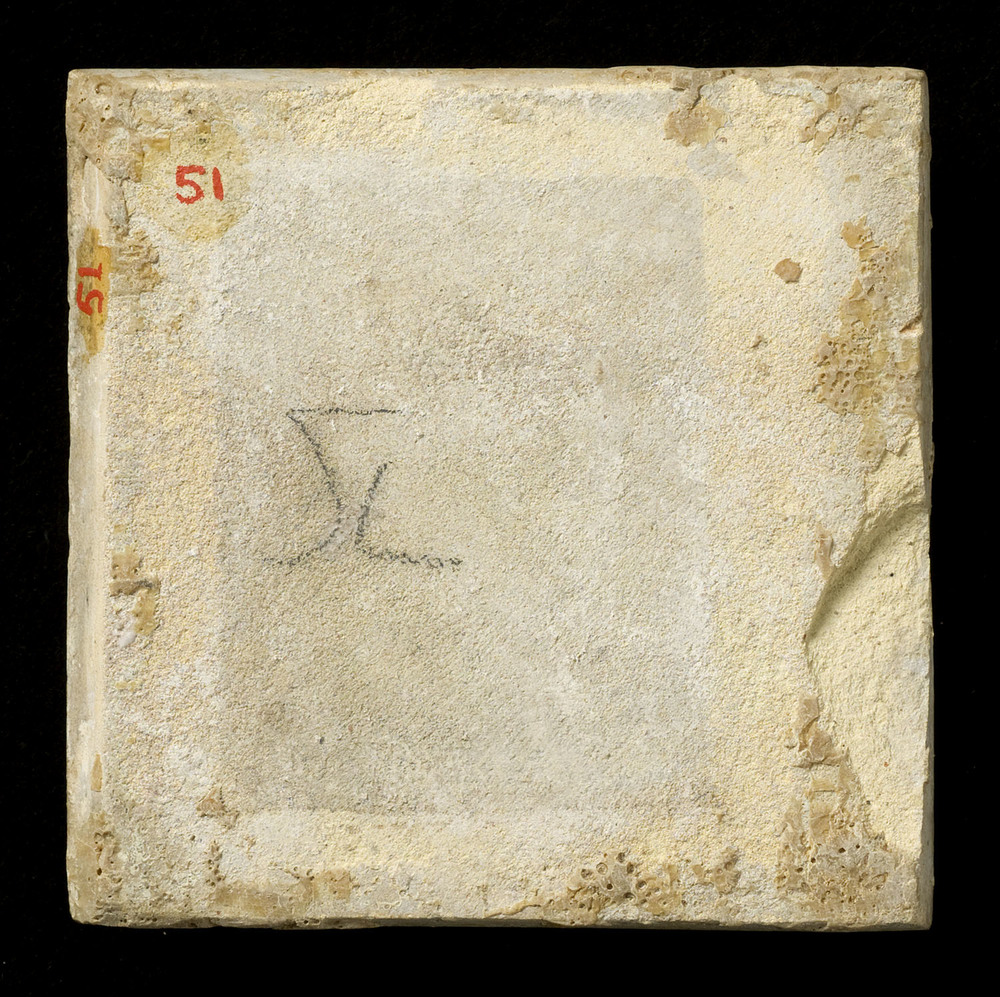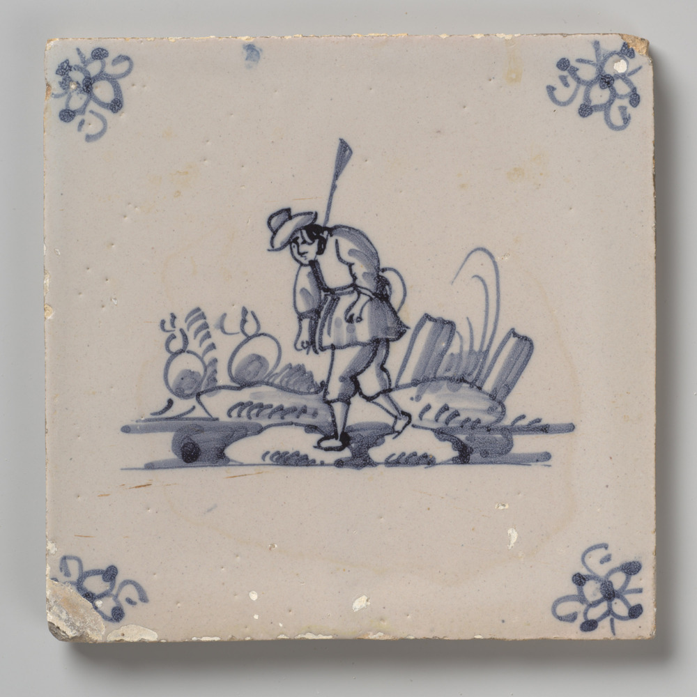 Tegel in tinglazuur, voorstellende een kunstenmaker ...