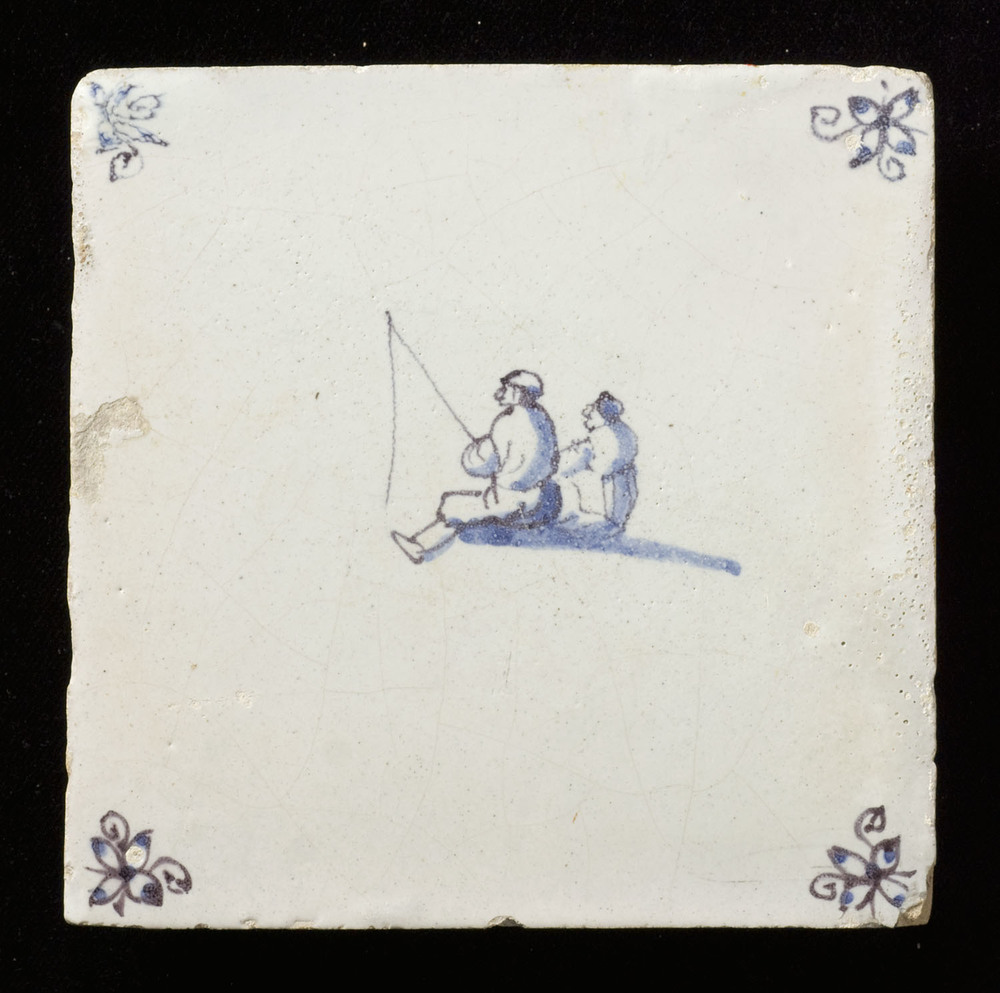 Tegel van keramiek, tinglazuur, voorstellende een fi...