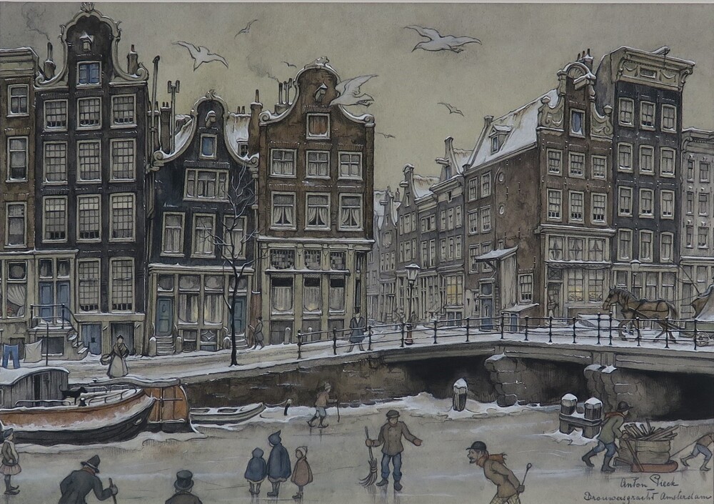 Schaatsen op de gracht, kalenderplaat Amsterdam, Bro...