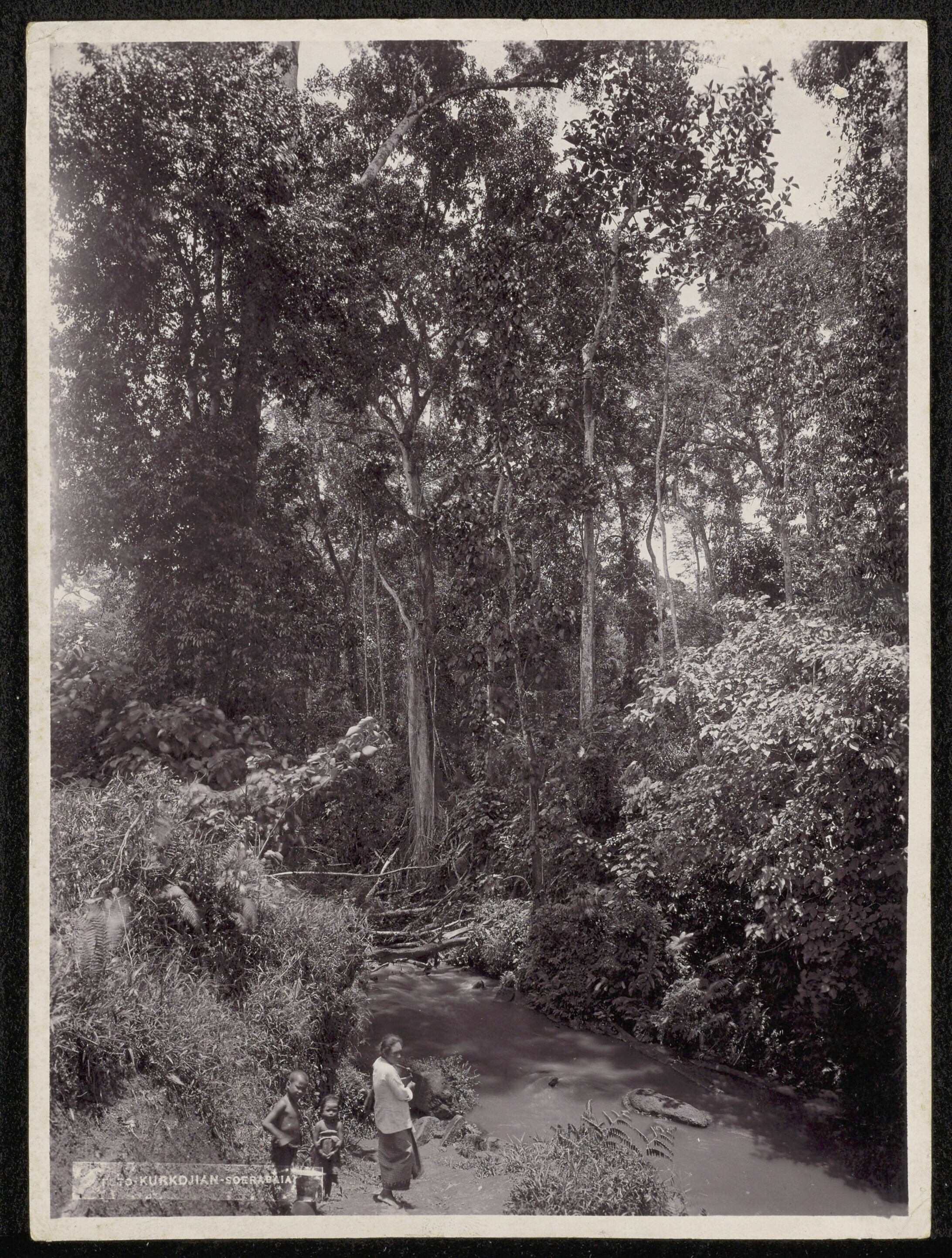 Javaanse vrouw met kinderen in een bos bij een rivier