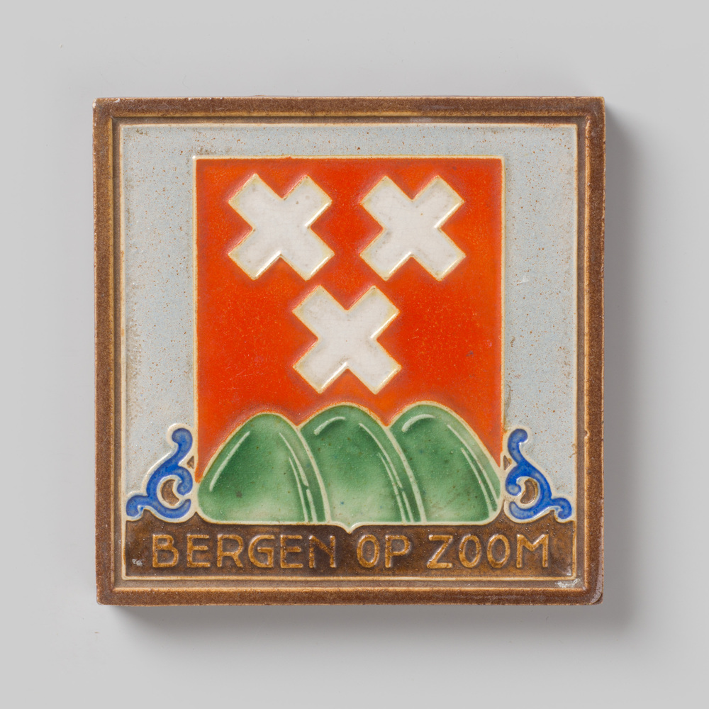 Tegel in cloisonné-techniek, voorstellende: wapen Be...