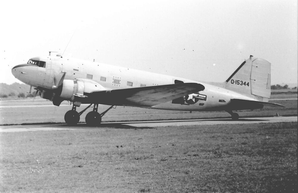 Douglas C-47B USAAF O-15344 op de rolbaan.
