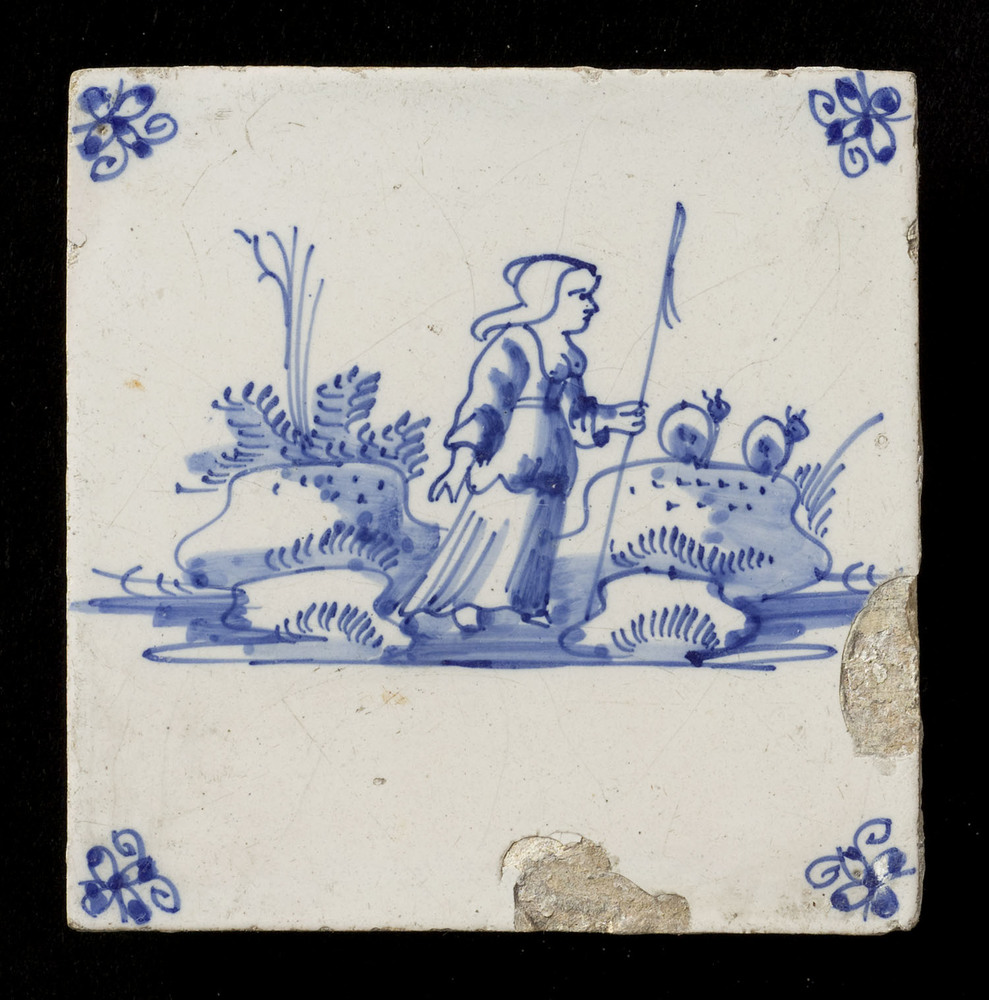 Tegel van keramiek, tinglazuur, voorstellende herder...