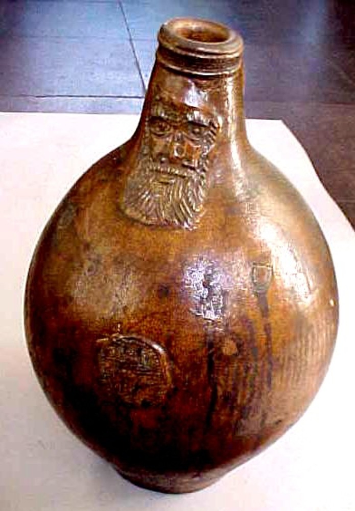 baardmankruik van geglazuurd aardewerk met slanke ha...