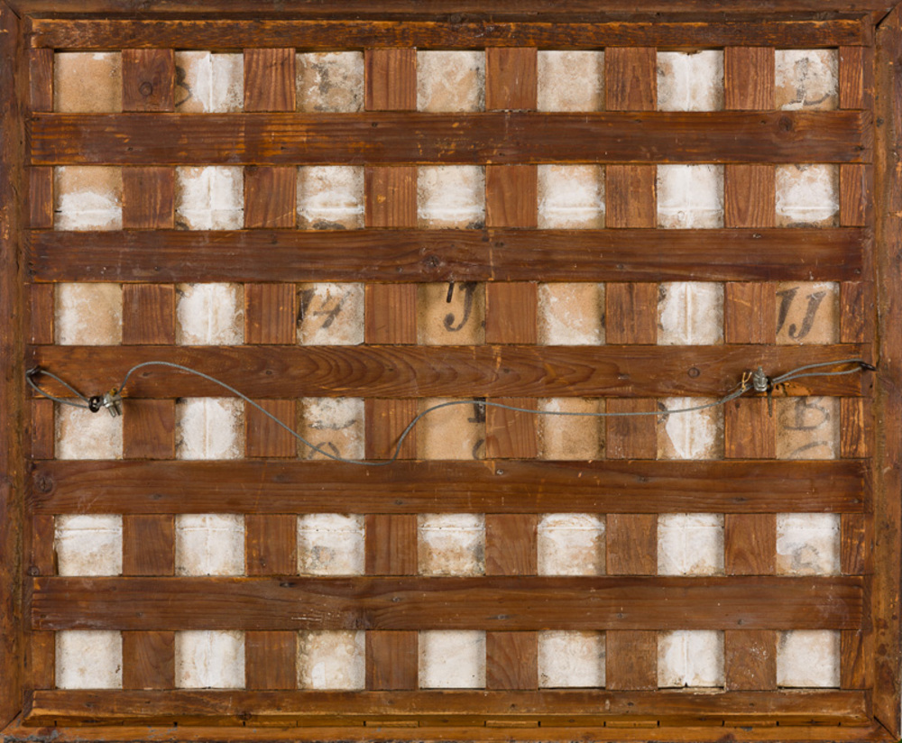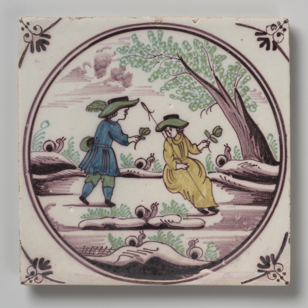 Tegelveld van keramiek, tinglazuur, voorstellende ee...