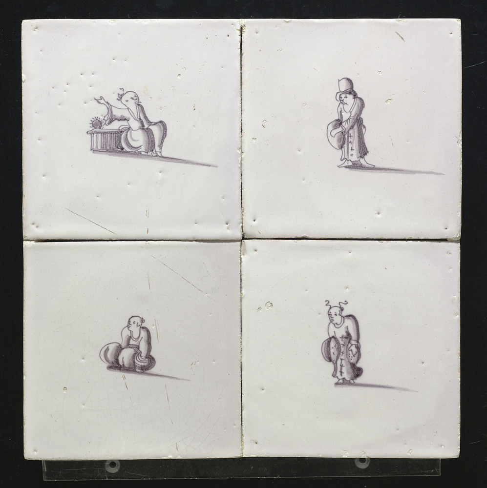 Tegelveld bestaande uit vier tegels van keramiek met...