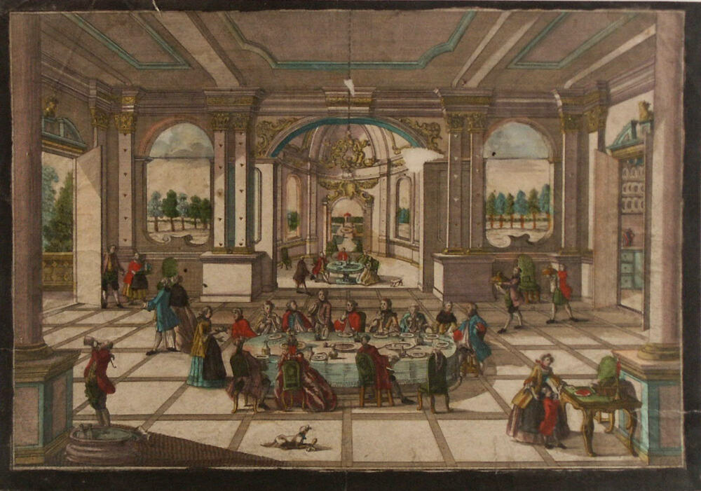 opticaprent, voorstellend maaltijd in een grote zaal...