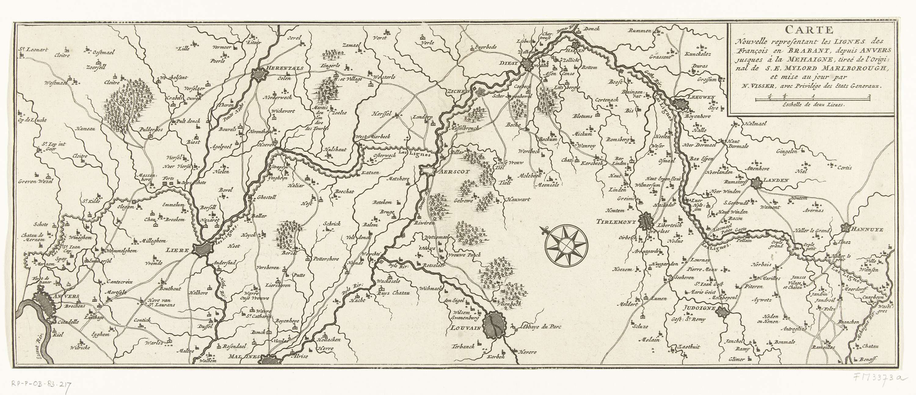 Kaart van de Franse linies in Brabant, ca. 1705