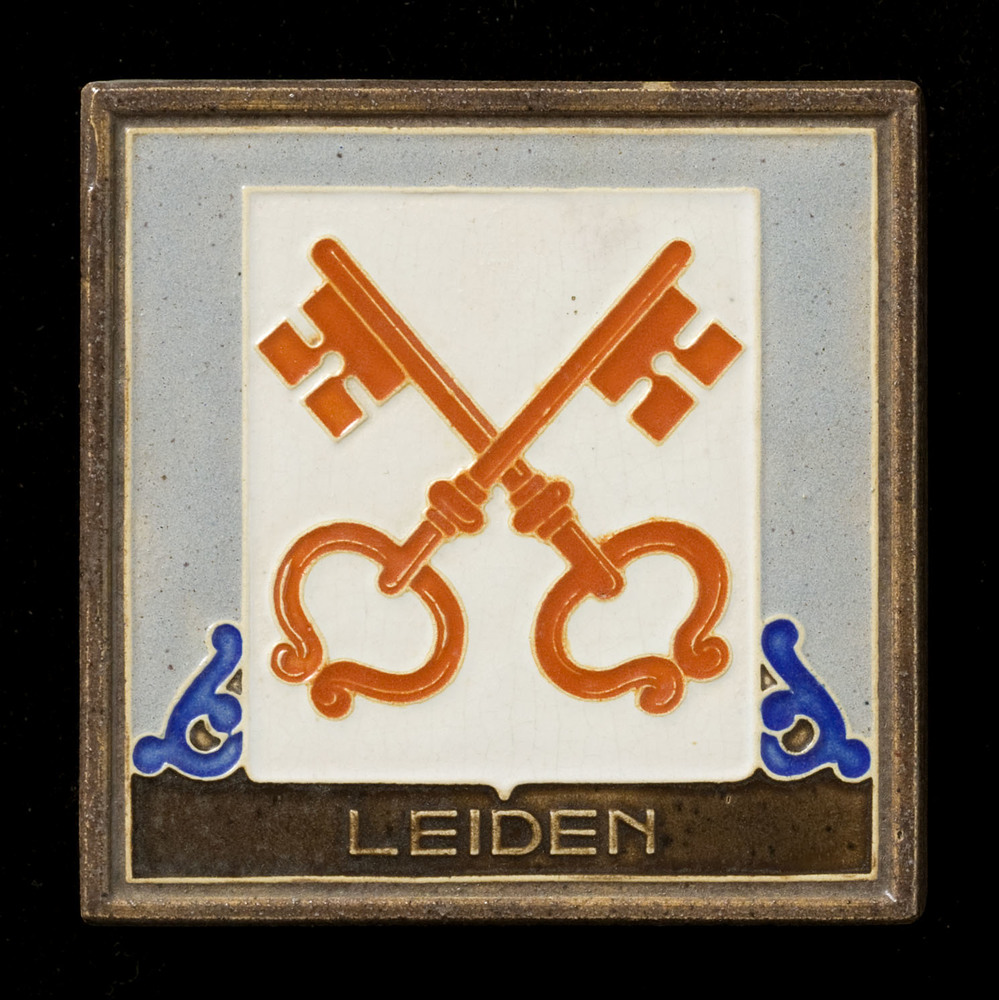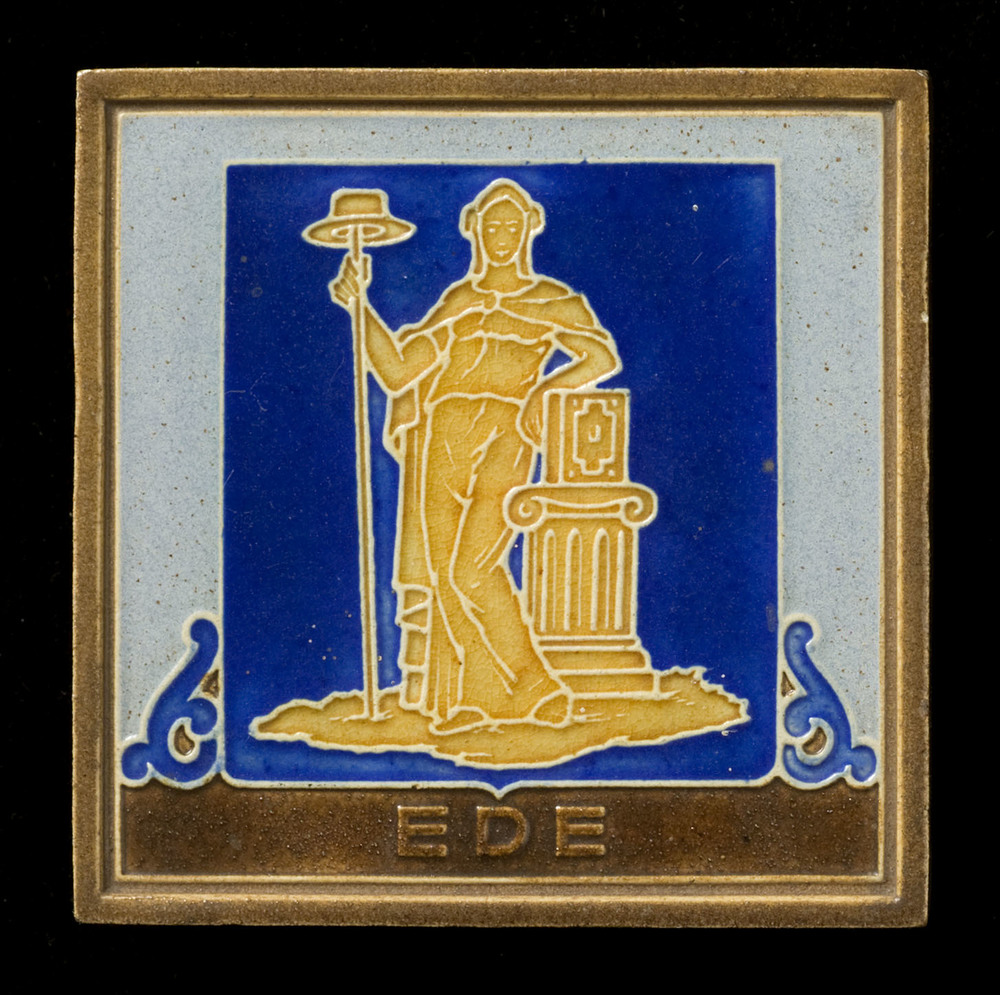 Tegel van keramiek met tinglazuur, voorstellende: De...