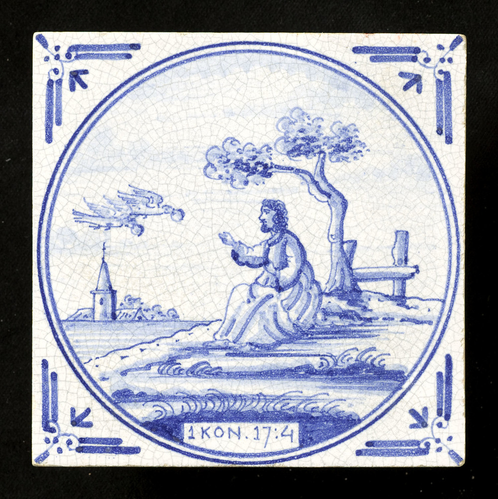 Tegel van aardewerk met tinglazuur, voorstellende: E...