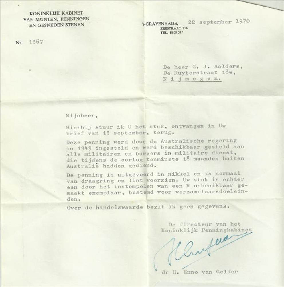 Brief van Koninklijk Kabinet van Munten , Penningen ...
