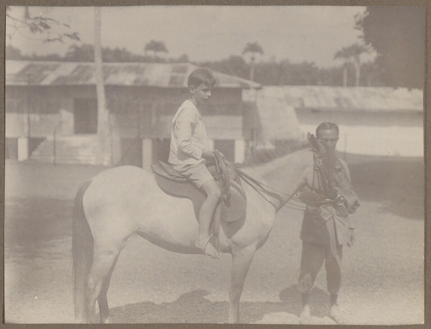 Jongen te paard met begeleider
