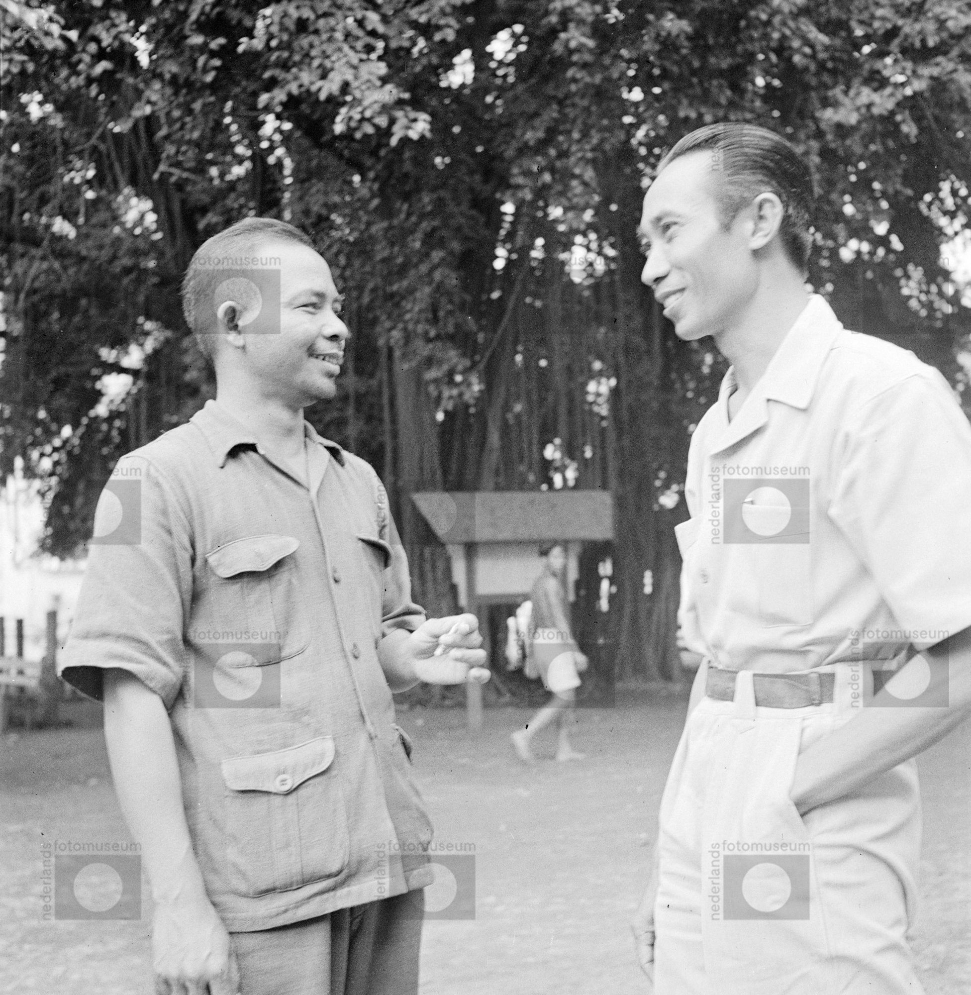 Twee mannen praten met elkaar, Indonesië (1947)