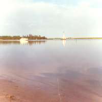 Veluwemeer. Een motor en een zeiljachtje voor en naa...
