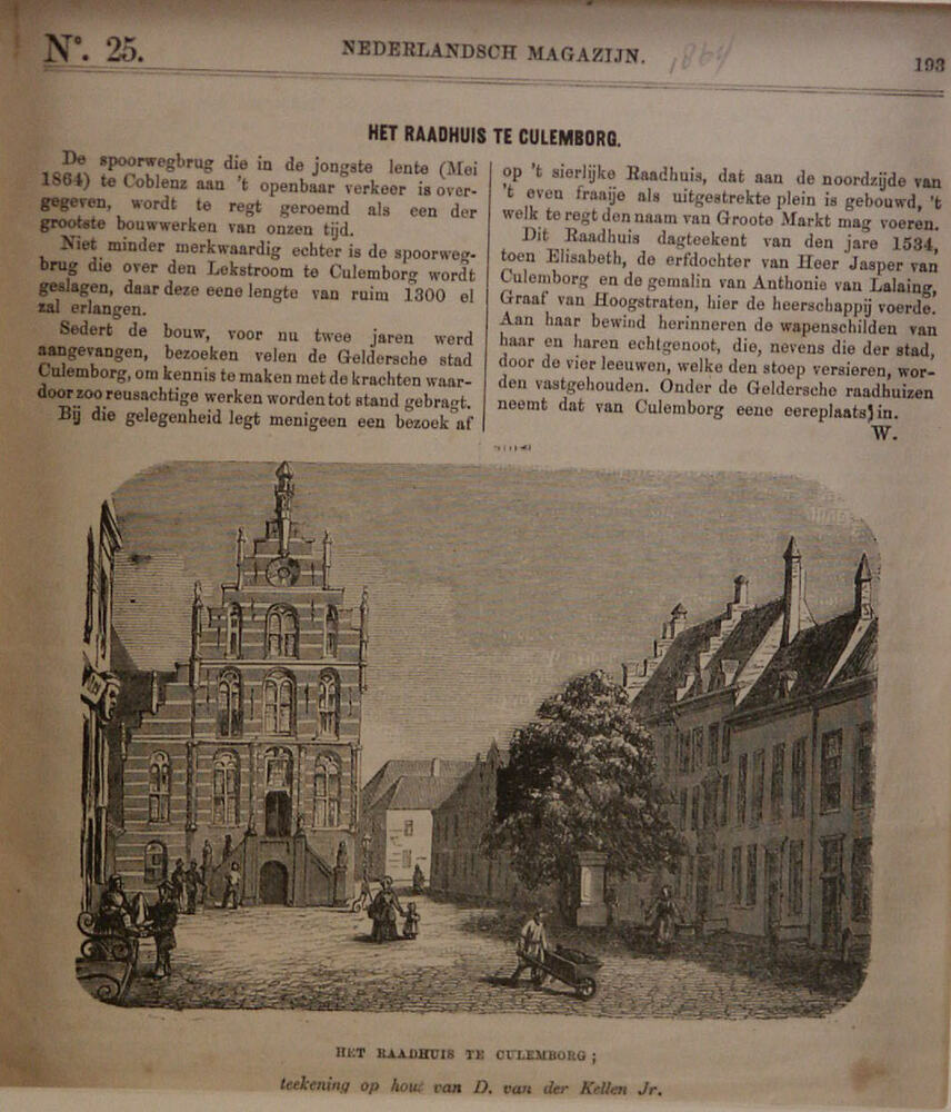 Houtgravure, voorstellende de Markt in Culemborg ric...