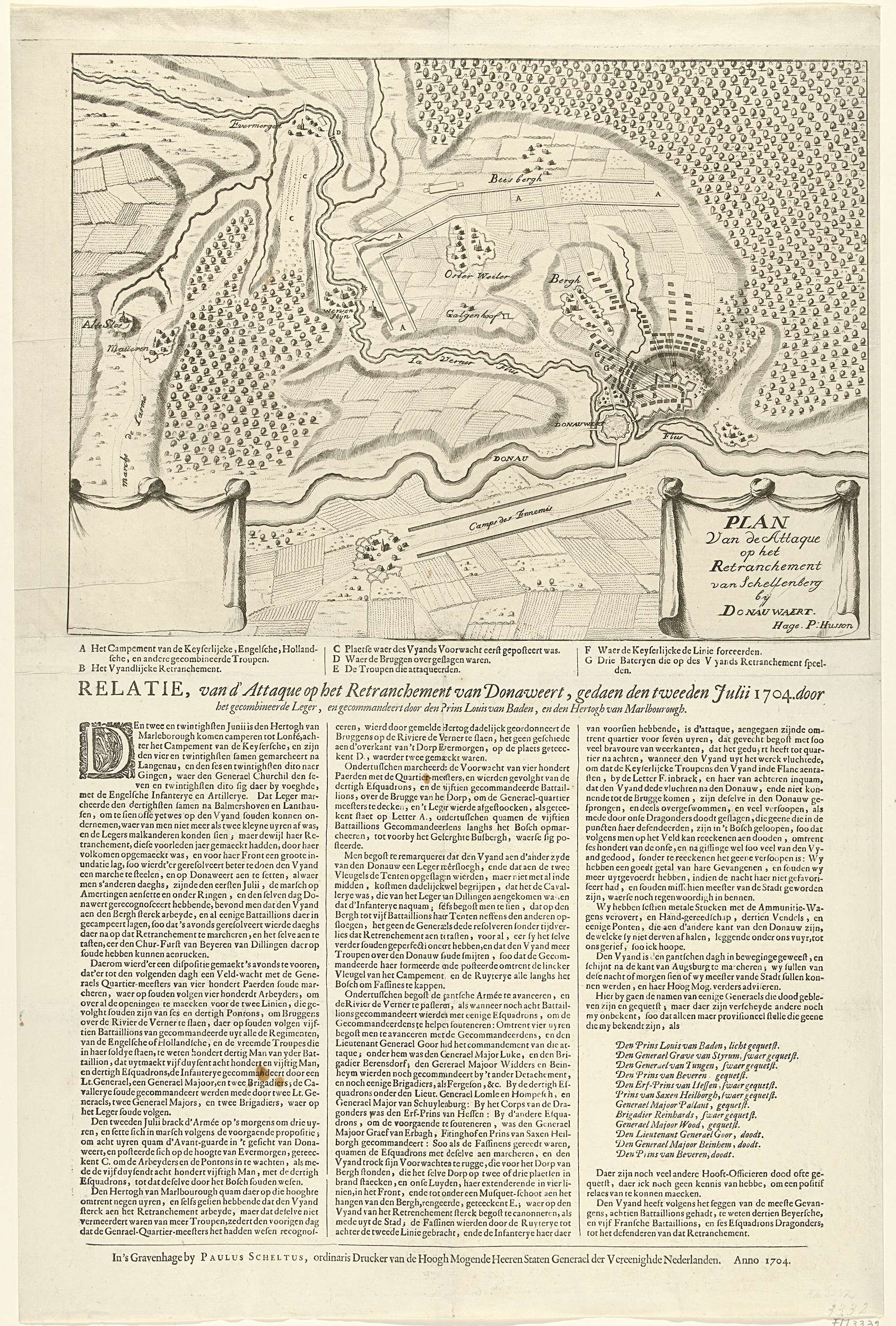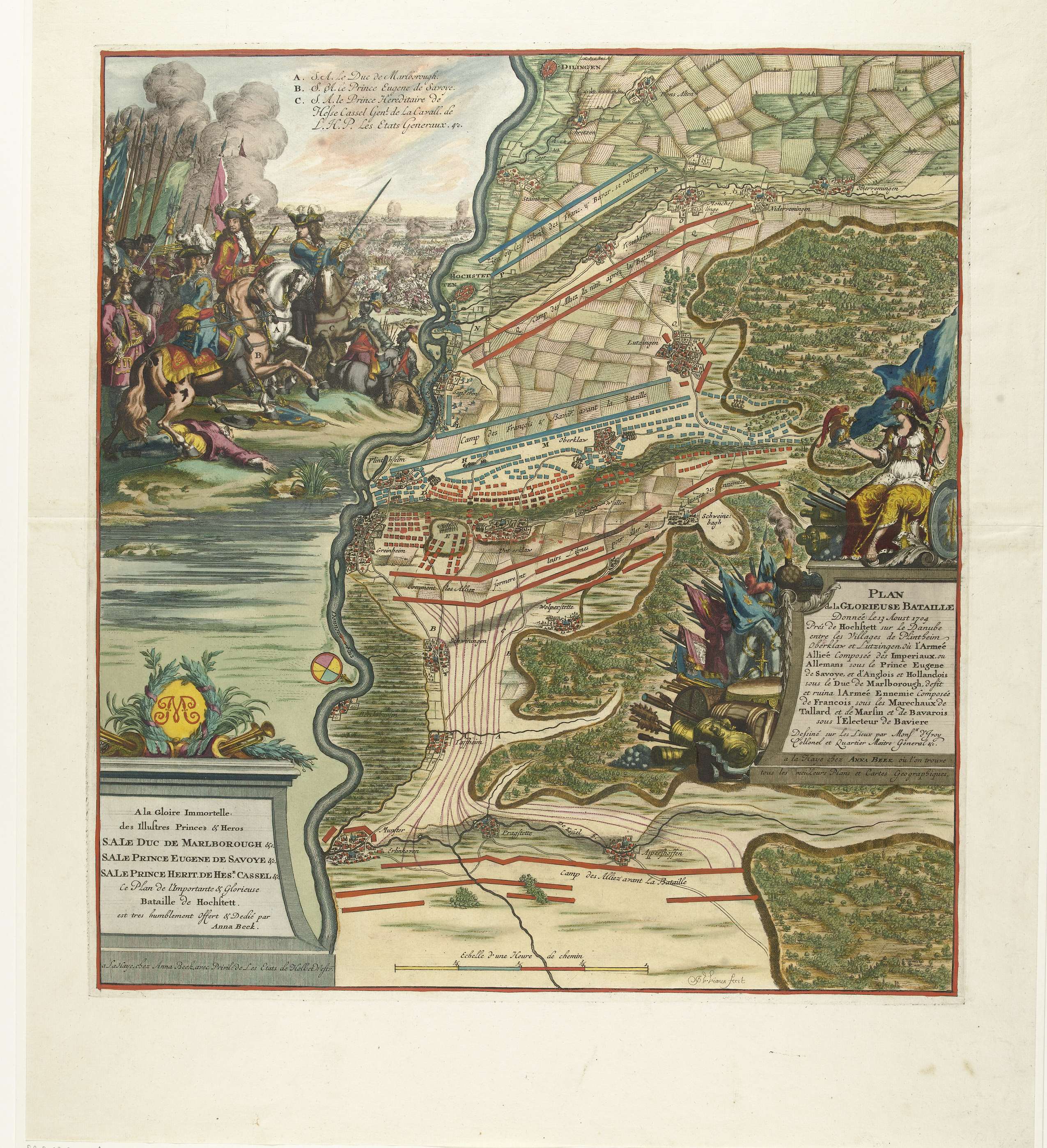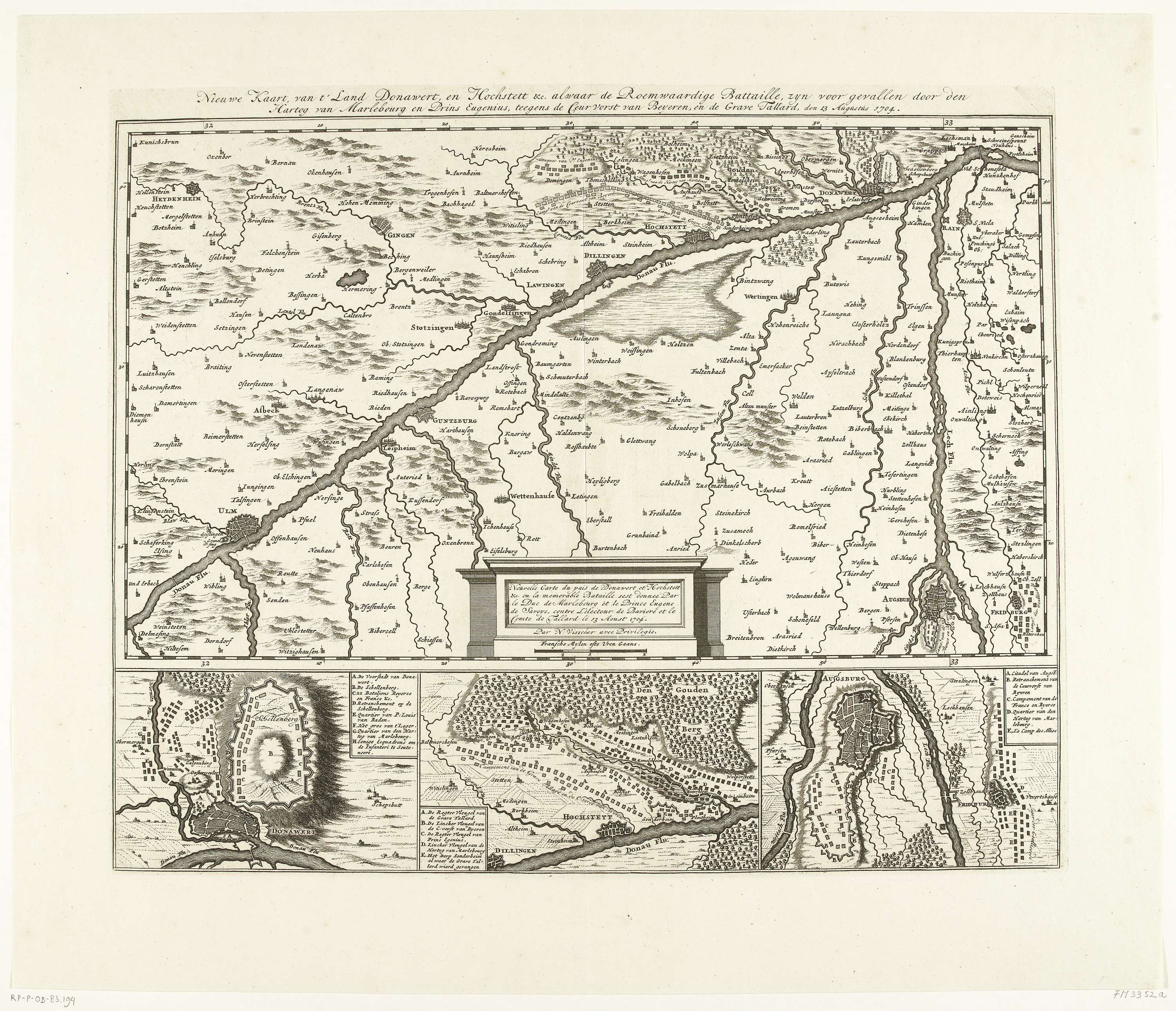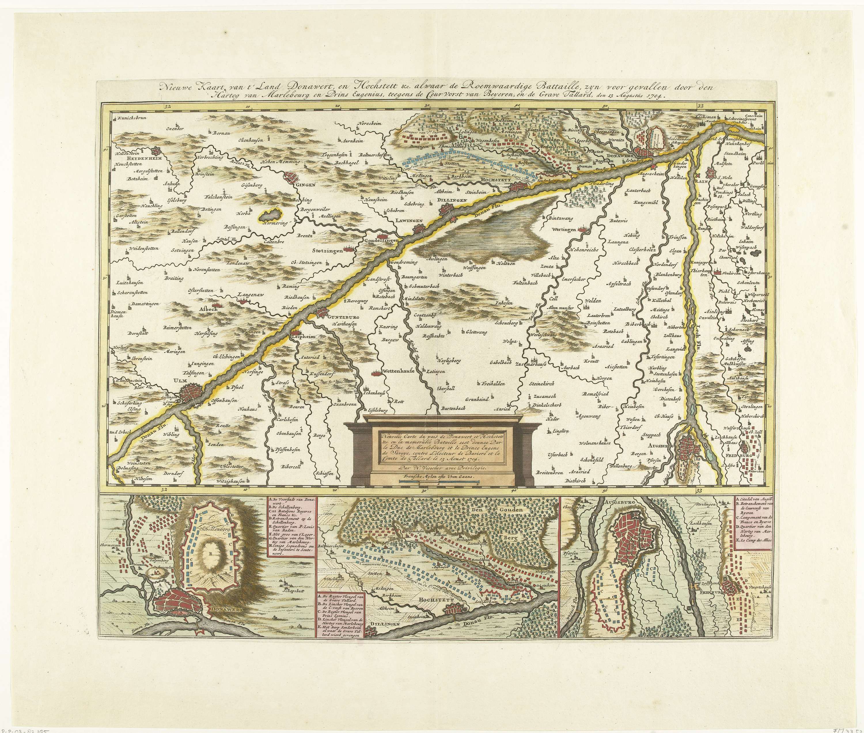 Kaart van het gevecht bij Donauwörth, 1704
