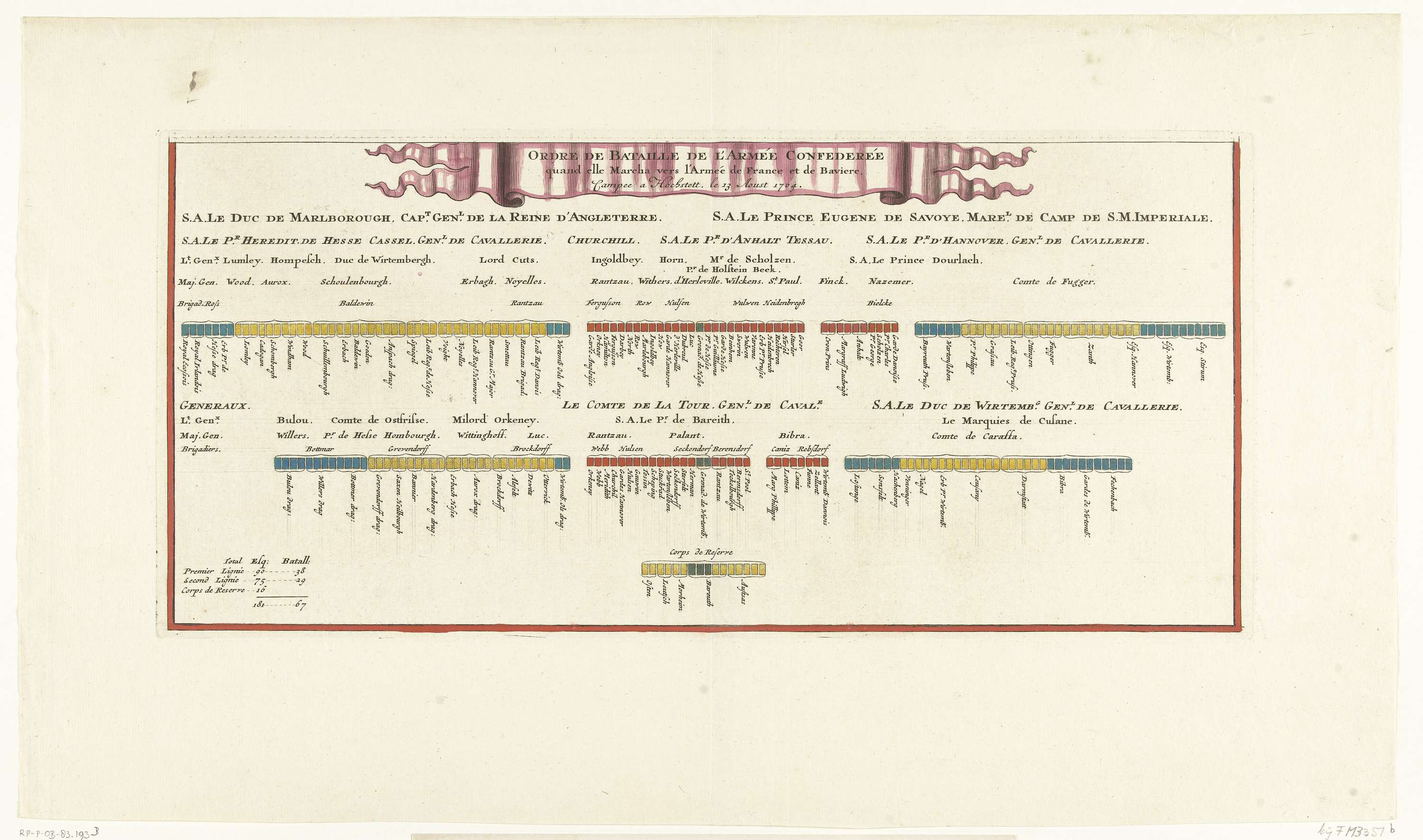 Slagorde van de Geallieerden voor de slag bij Höchst...