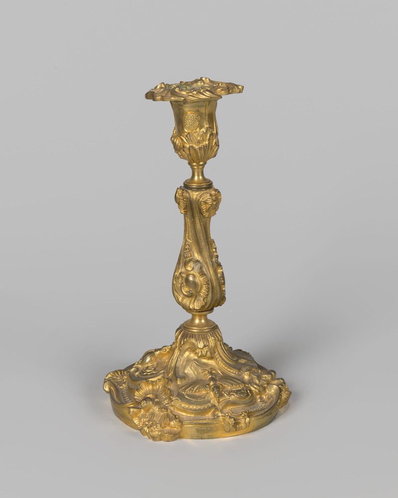 Vergulde kandelaar met insecten en rococo-motieven