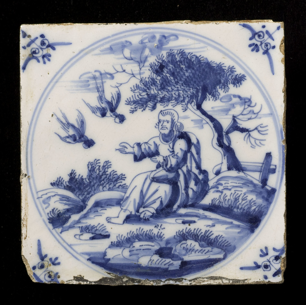 Tegel in tinglazuur, voorstellende 1 kon.17-6, Elia ...