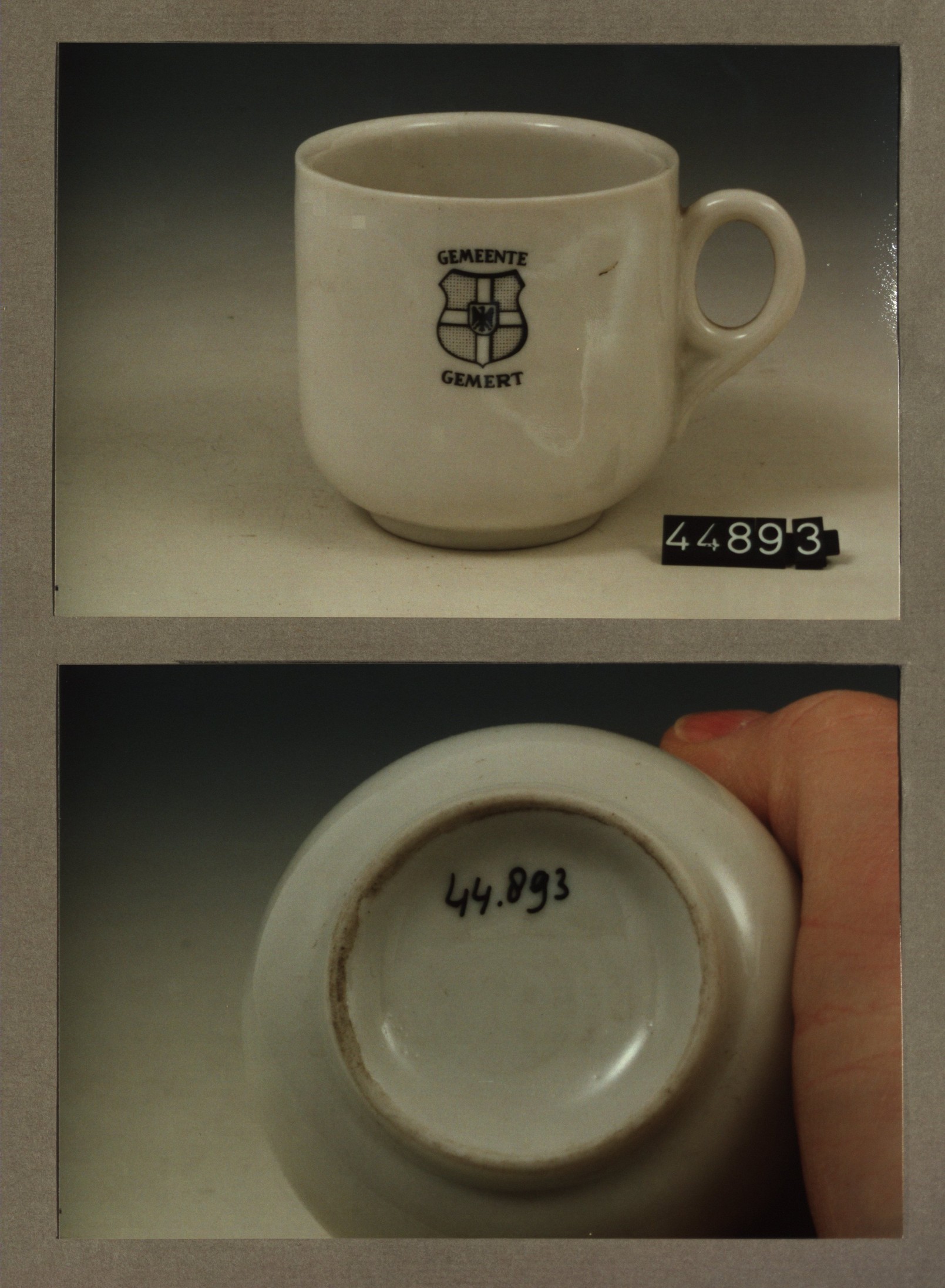 Kop met opschrift, model F met decor Gemeente Gemert