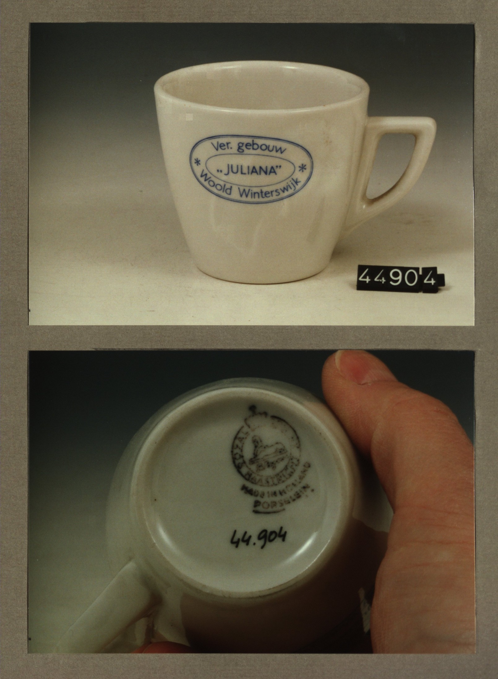 Kop met opschrift, model P2 met decor Ver.gebouw Jul...