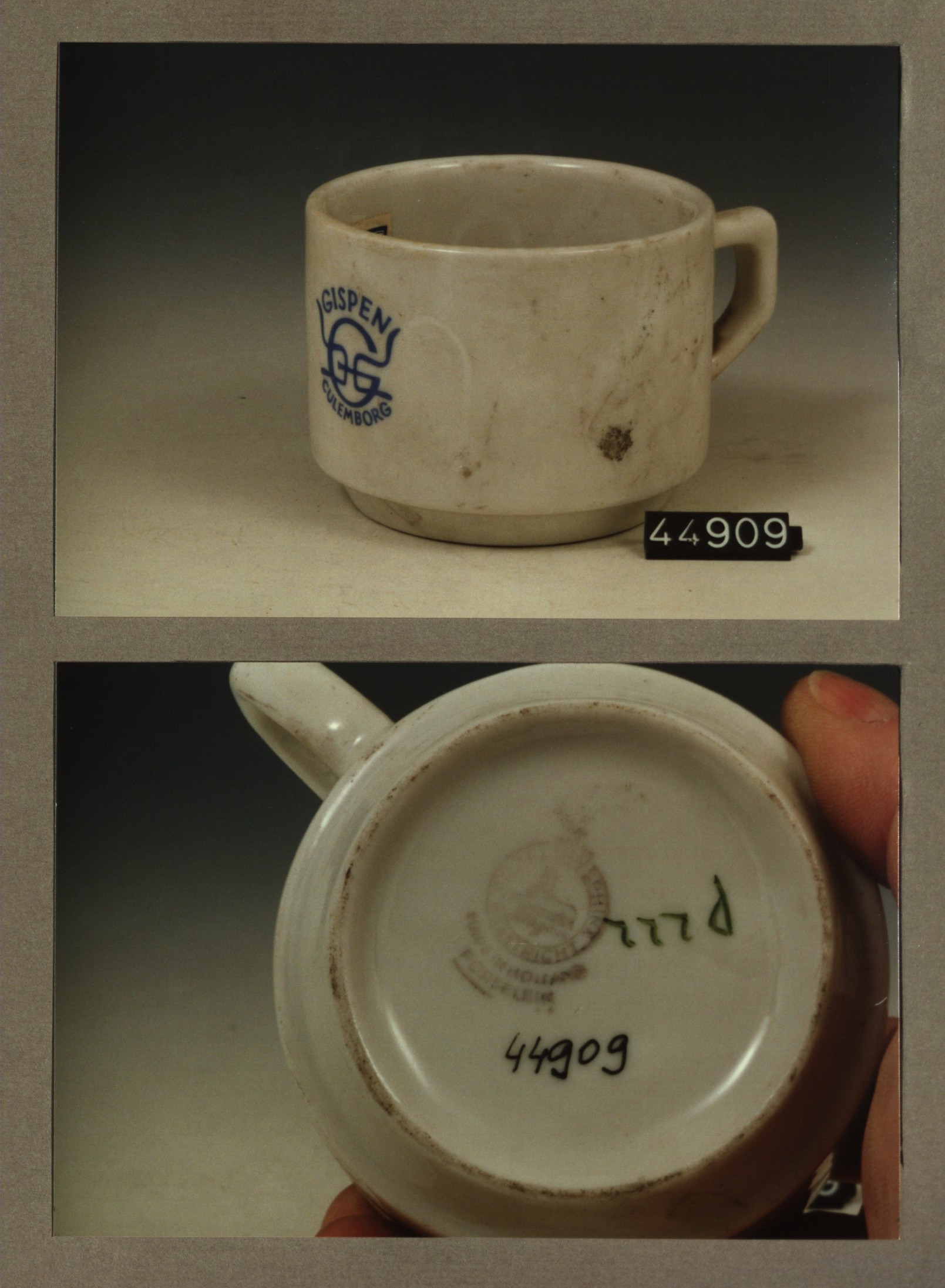 Kop met opschrift, model I met decor Gispen Culemborg