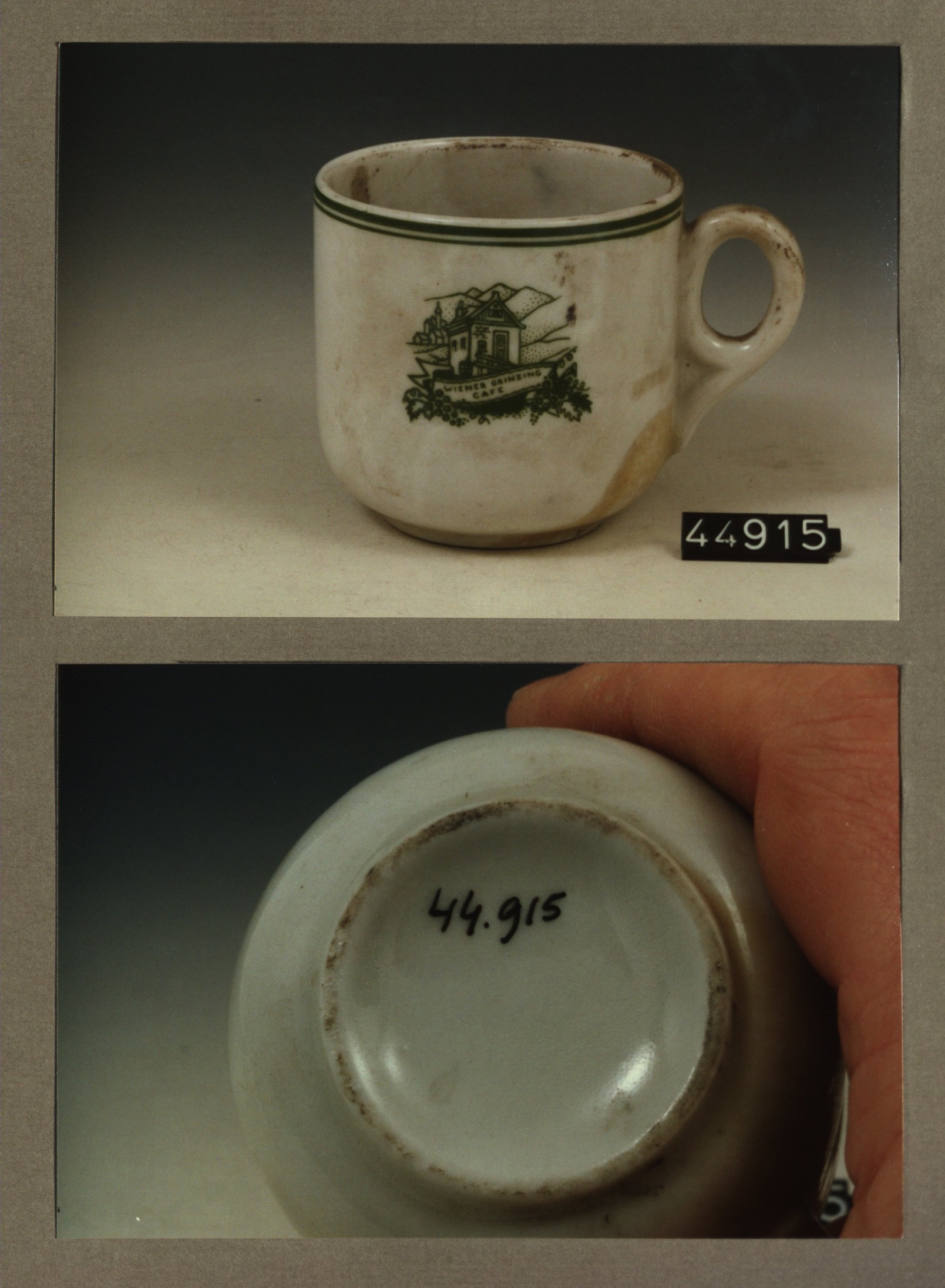 Kop met opschrift, model F met decor Wiener Grinzing...