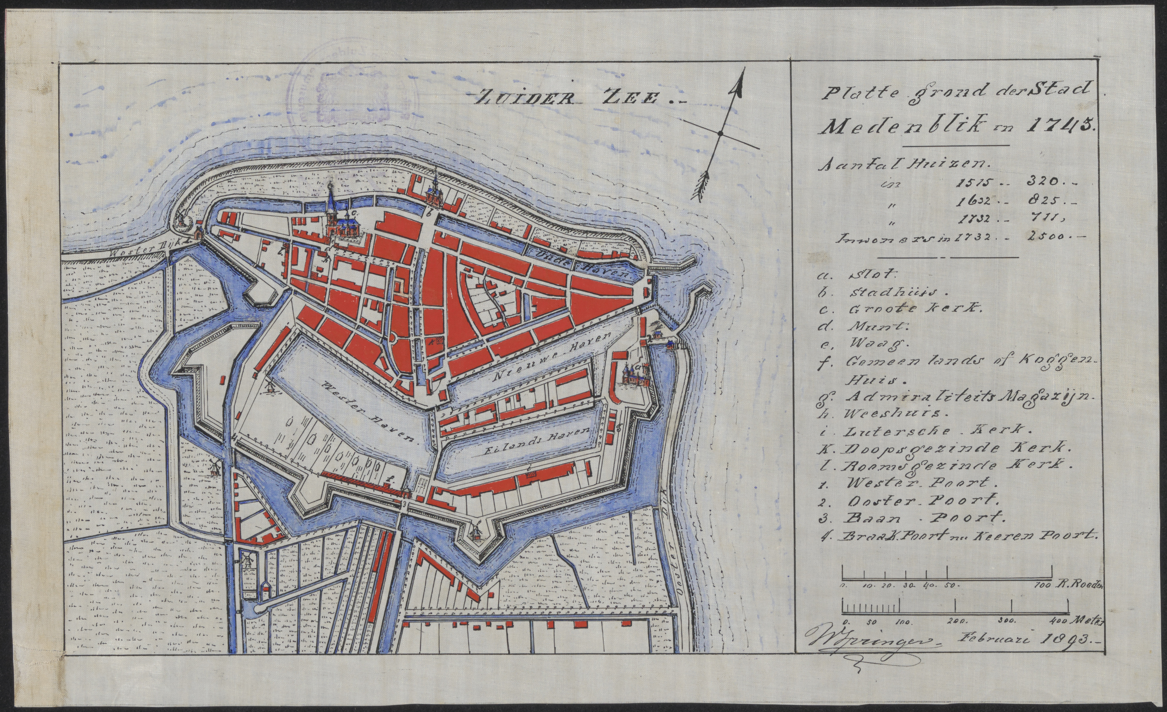 Platte . grond der Stad Medenblik in 1743