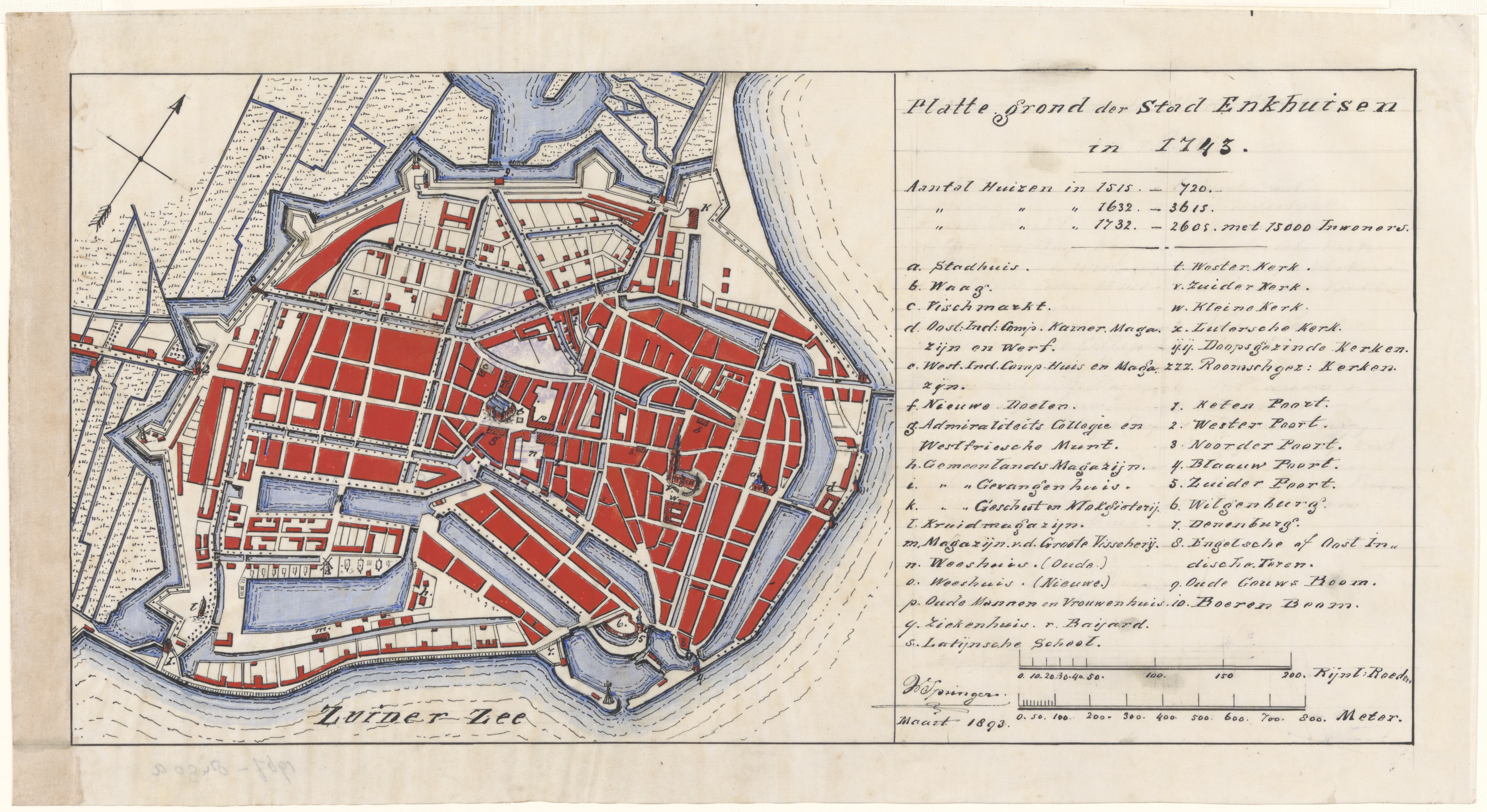 Plattegrond der Stad Enkhuisen in 1743