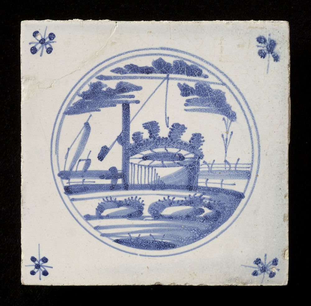 Tegel van keramiek, tinglazuur, voorstellende een la...