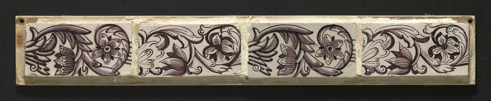 Tegelveld in tinglazuur, voorstellende randtegel met...