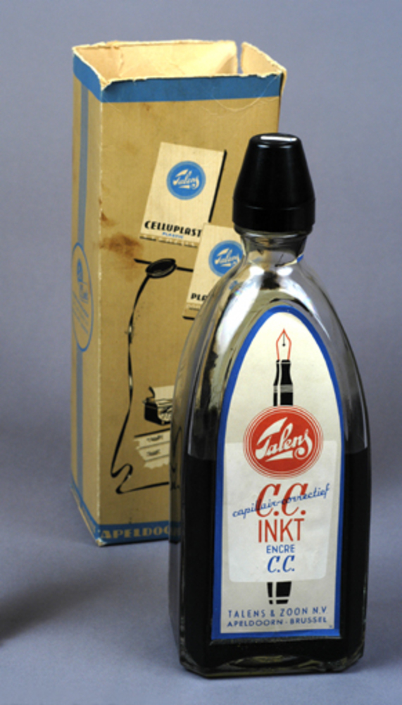Flesje van glas met strijkdop gevuld met 'Gim-Gom' d...