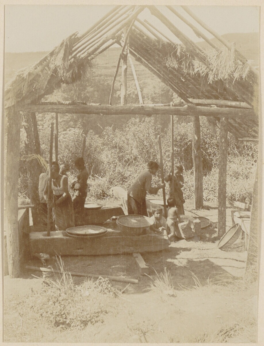 Javaanse vrouwen stampen rijst