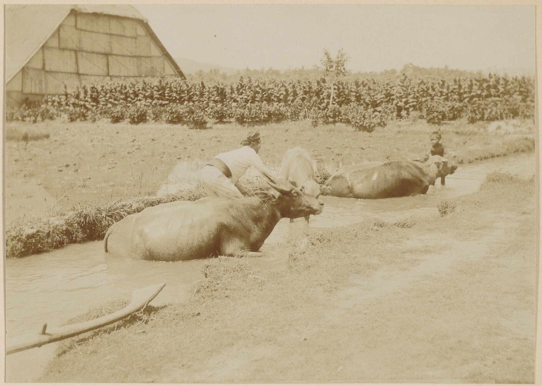 Titelblad met foto van Javaanse arbeiders met rund a...