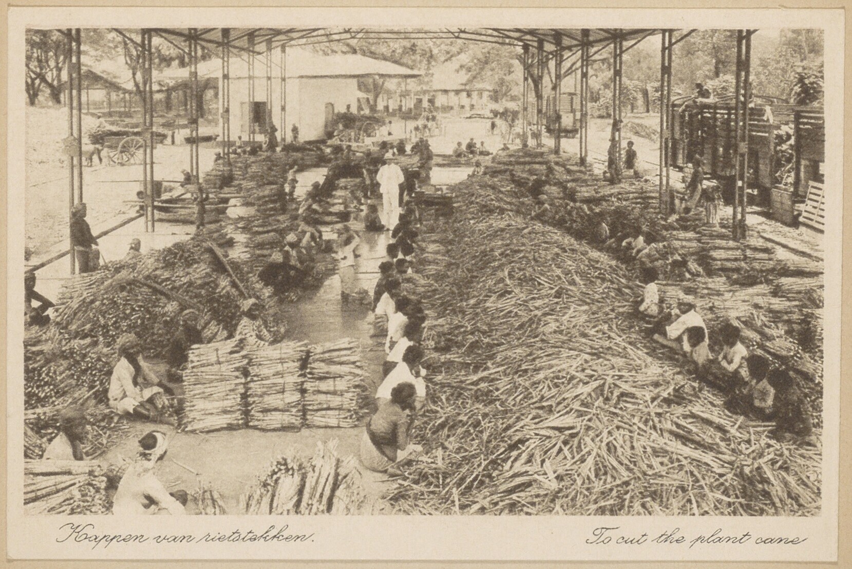 Javaanse arbeiders aan het werk op suikerplantage op...