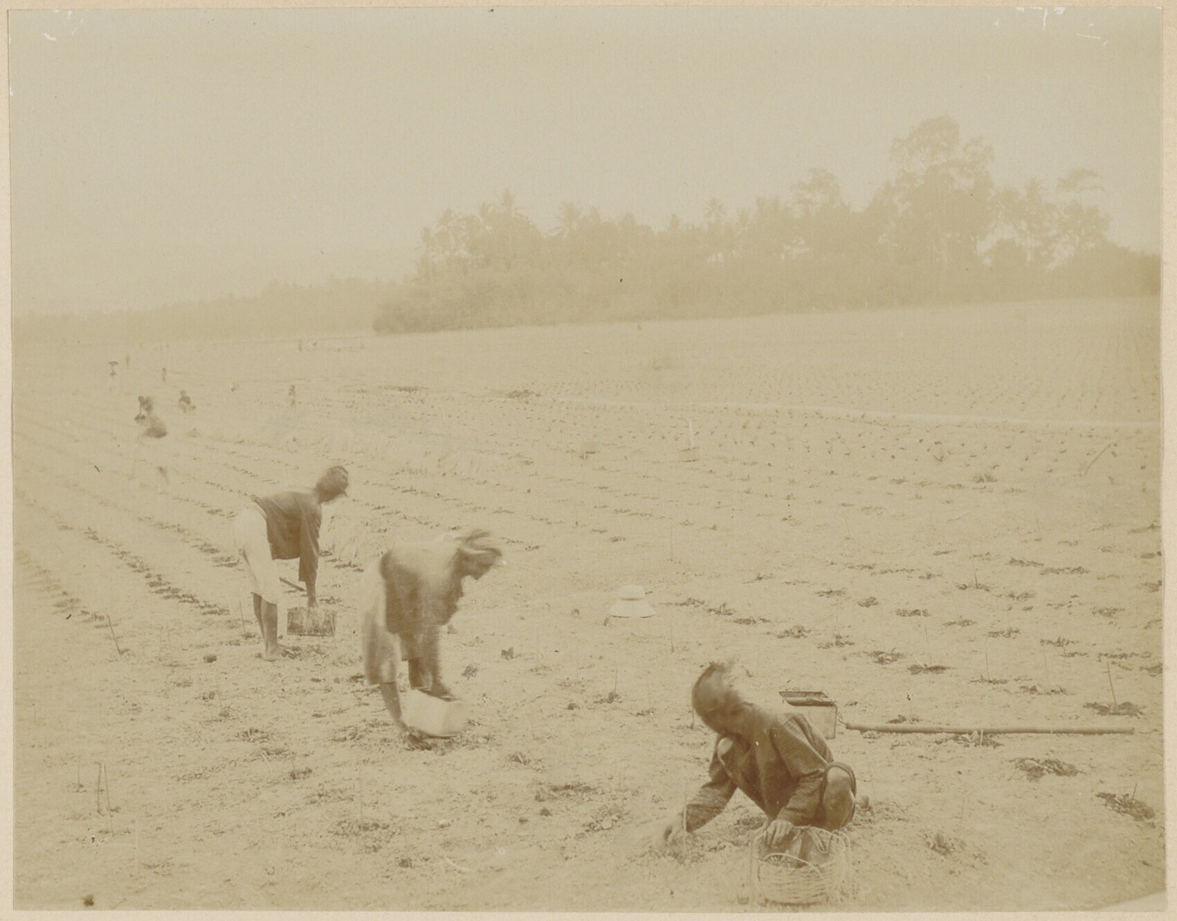 Javaanse arbeiders op een een akker van een tabakspl...