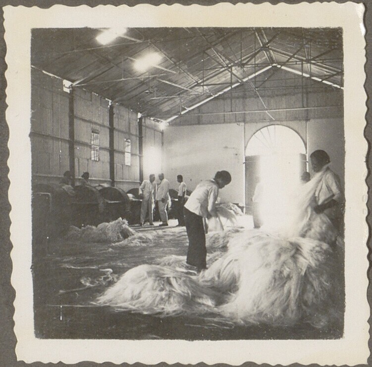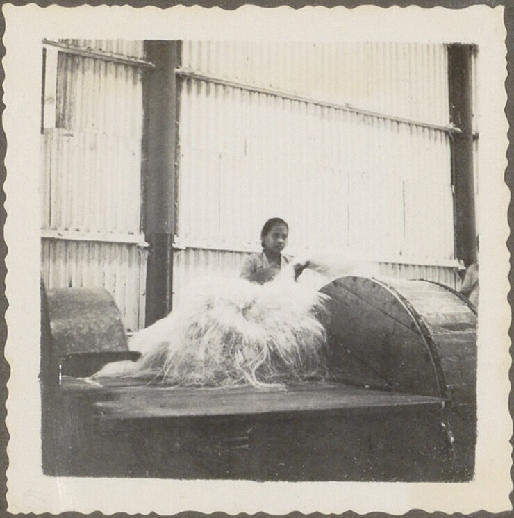 Javaanse arbeiders aan het werk in een schuur van ee...