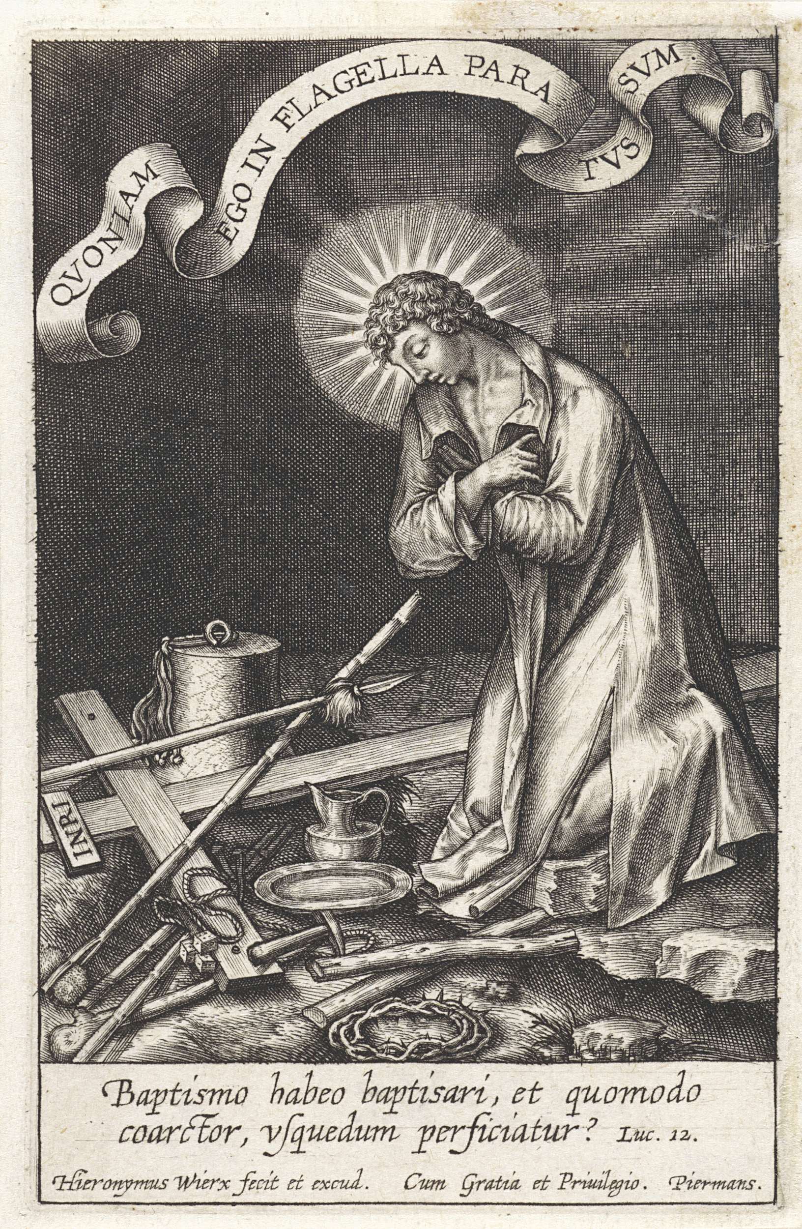 Ignatius van Loyola knielt voor Christus als de Goed...