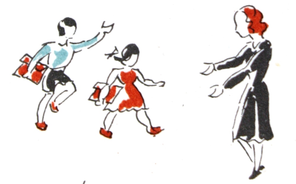 Illustratie door Jo Spier van vrouw en twee kinderen...