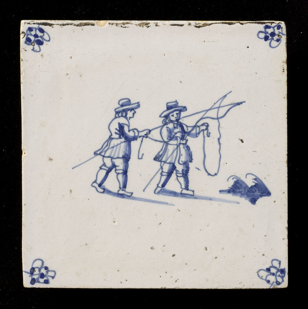 Tegel van keramiek, tinglazuur, voorstellende getipp...