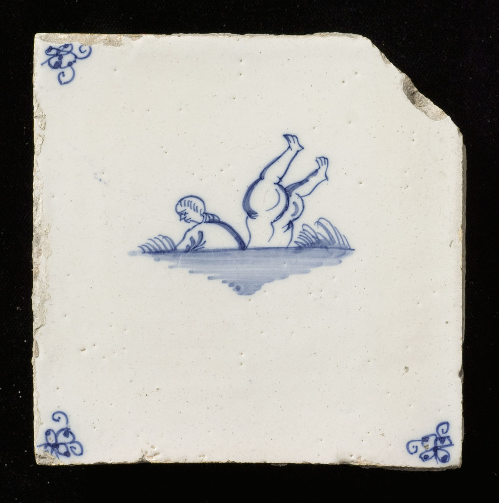 Tegel in tinglazuur, voorstellende figuur ca. 1650-1700