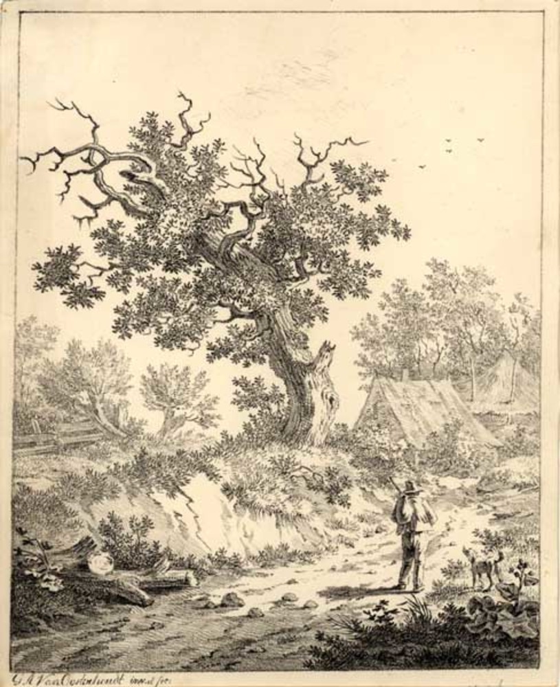 Lithografie, voorstellende een landschap, vervaardig...