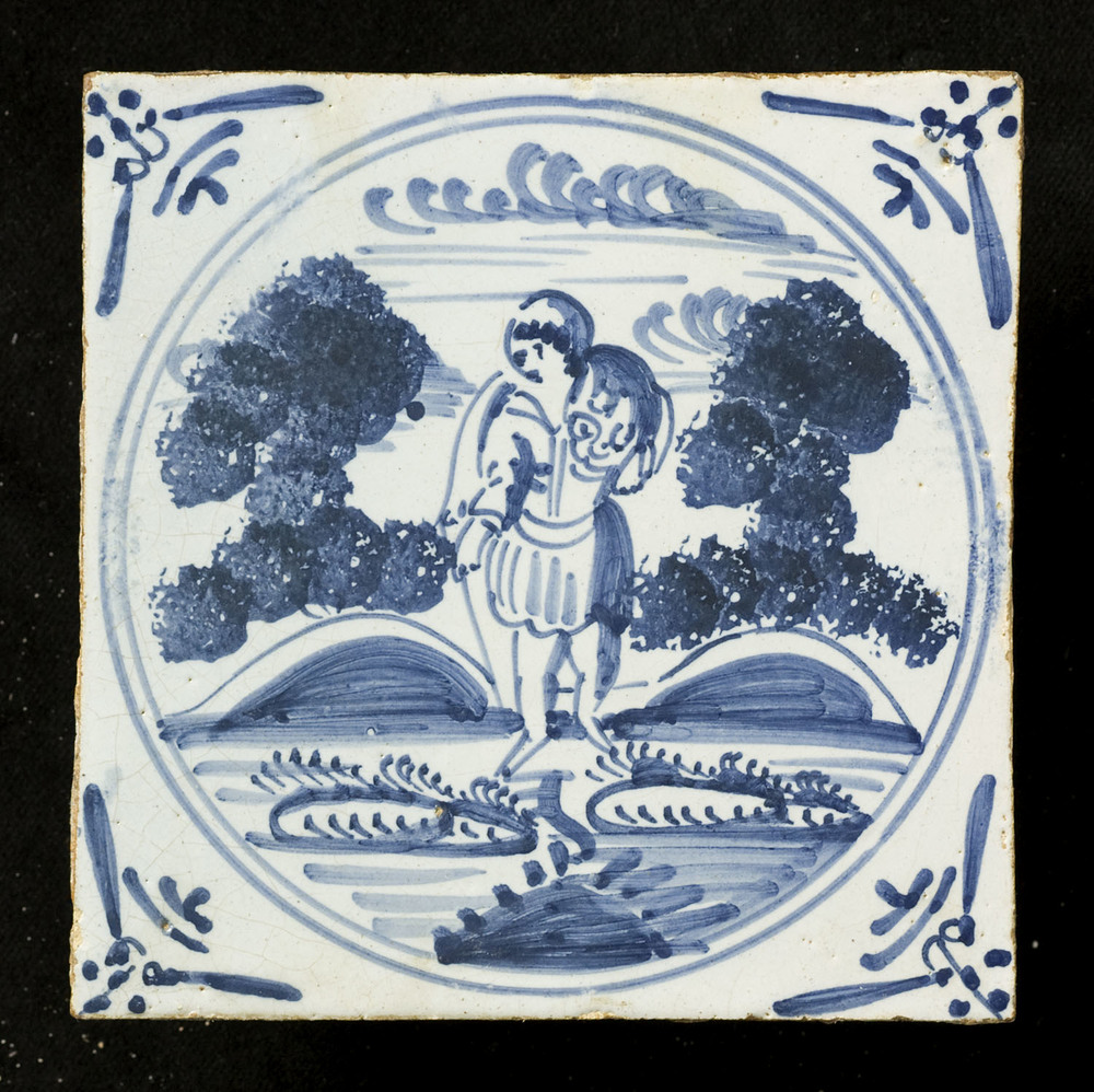 tegel van aardewerk met tinglazuur, voorstellende: h...