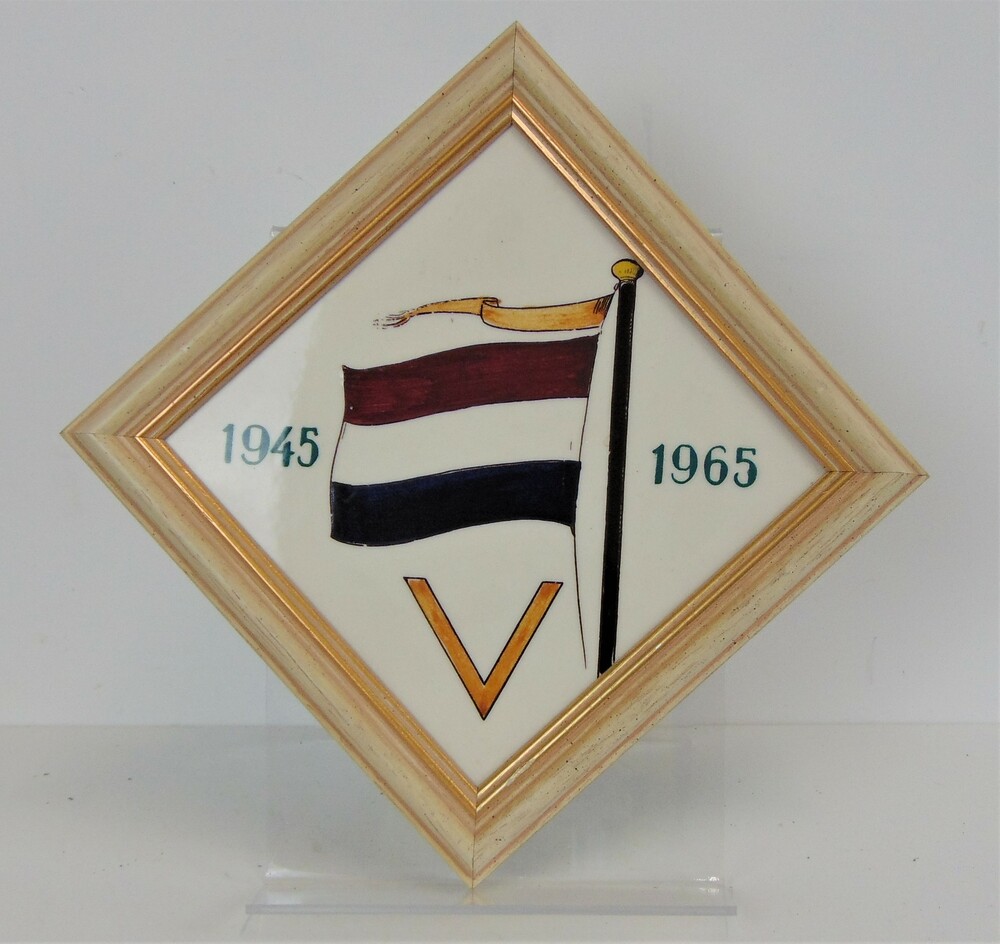 Keramiek tegel geel, vlag + V-teken 1945-1965
