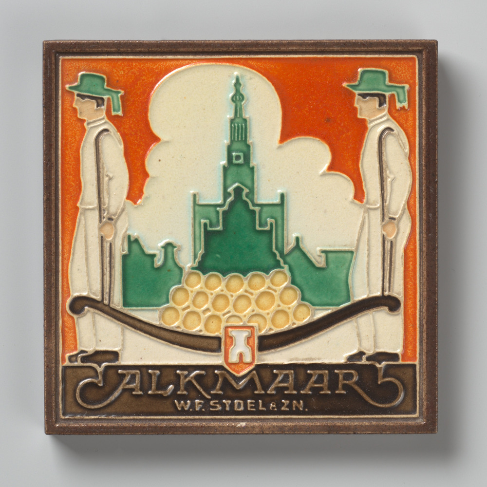 Tegel in cloisonné-techniek, met voorstelling: kaasd...