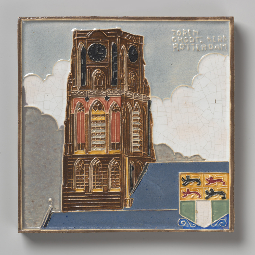 Tegel in cloisonné-techniek, met voorstelling: Toren...