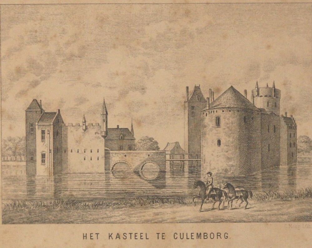 litho, voorstellende gezicht op het kasteel Culembor...