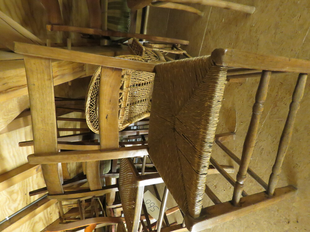 stoel van hout met biezen zitting, ca. 1900