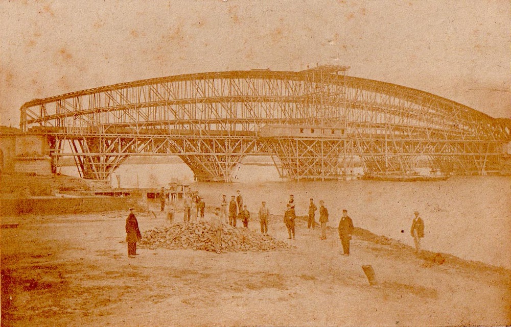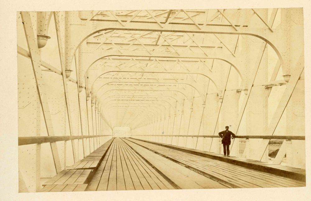 Foto, voorstellende de spoorbrug te Culemborg, 1868